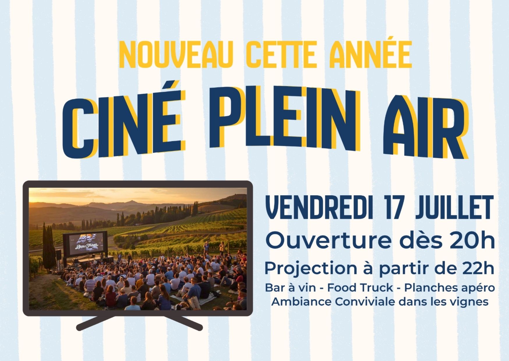 Ciné Plein Air – Vendredi 17 Juillet Rendez-vous pour une soirée cinéma sous les étoiles avec la projection du film Un ptit truc en plus de Artus. L’occasion de profiter d’un film léger et amusant dans une ambiance détendue, tout en savourant l’air frais de la campagne. Apportez votre plaid, installez-vous confortablement et laissez-vous transporter par cette comédie pleine de charme. Film en plein air, à partir de 22h.
